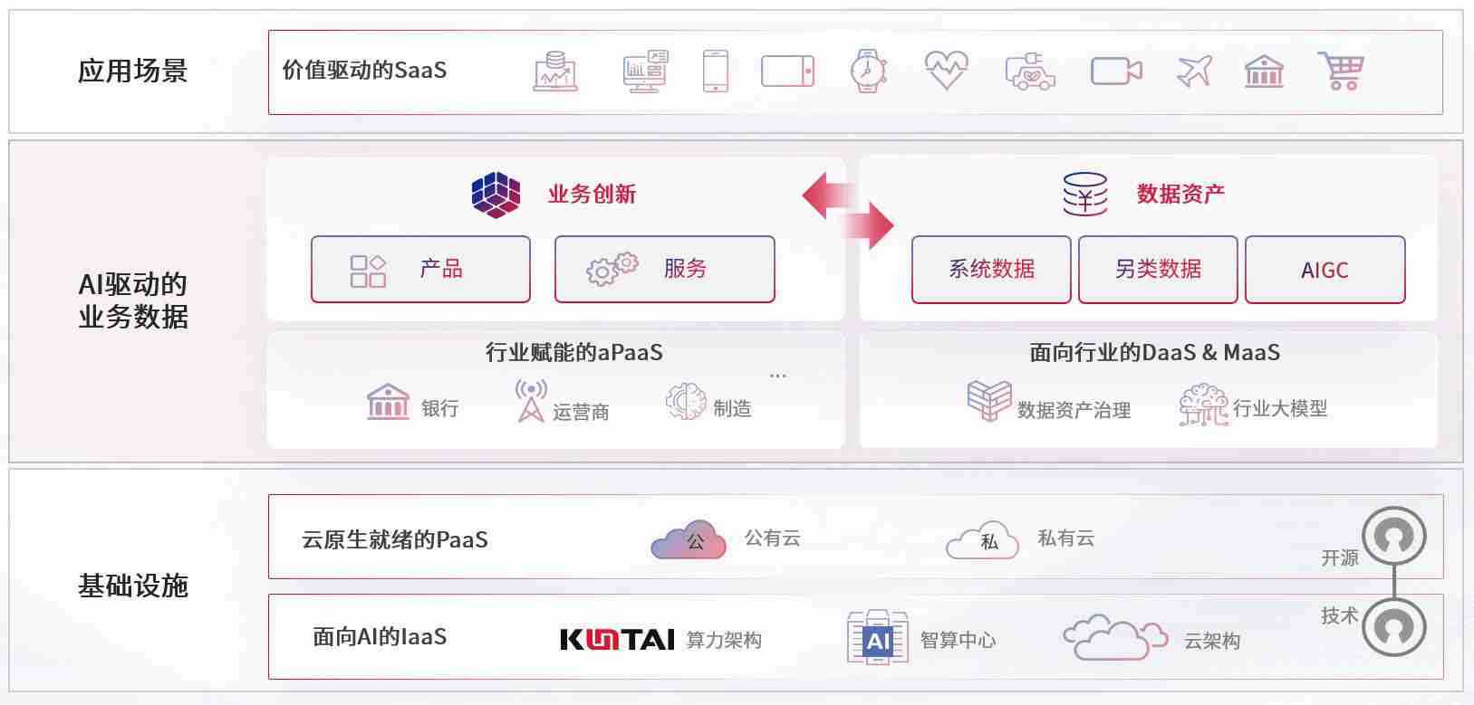 数字时代,,,围绕企业数字化转型的关键要素,,,z6com尊龙数码开创性的提出数云融合战略和技术体系框架,,,,着力在云原生、、、、数字原生、、、、AI原生和信创产业上架构产品和服务能力,,为处在不同数字化转型阶段的快消零售、、汽车、、金融、、、医疗、、政企、、、、教育、、运营商等行业客户提供泛在的敏捷IT能力和融合的数据驱动能力,,,构建跨界融合创新的数字业务场景和新业务模式,,助力企业级客户建立面向未来的核心能力和竞争优势,,,,全面推动社会的数字化、、智能化转型升级。。。。